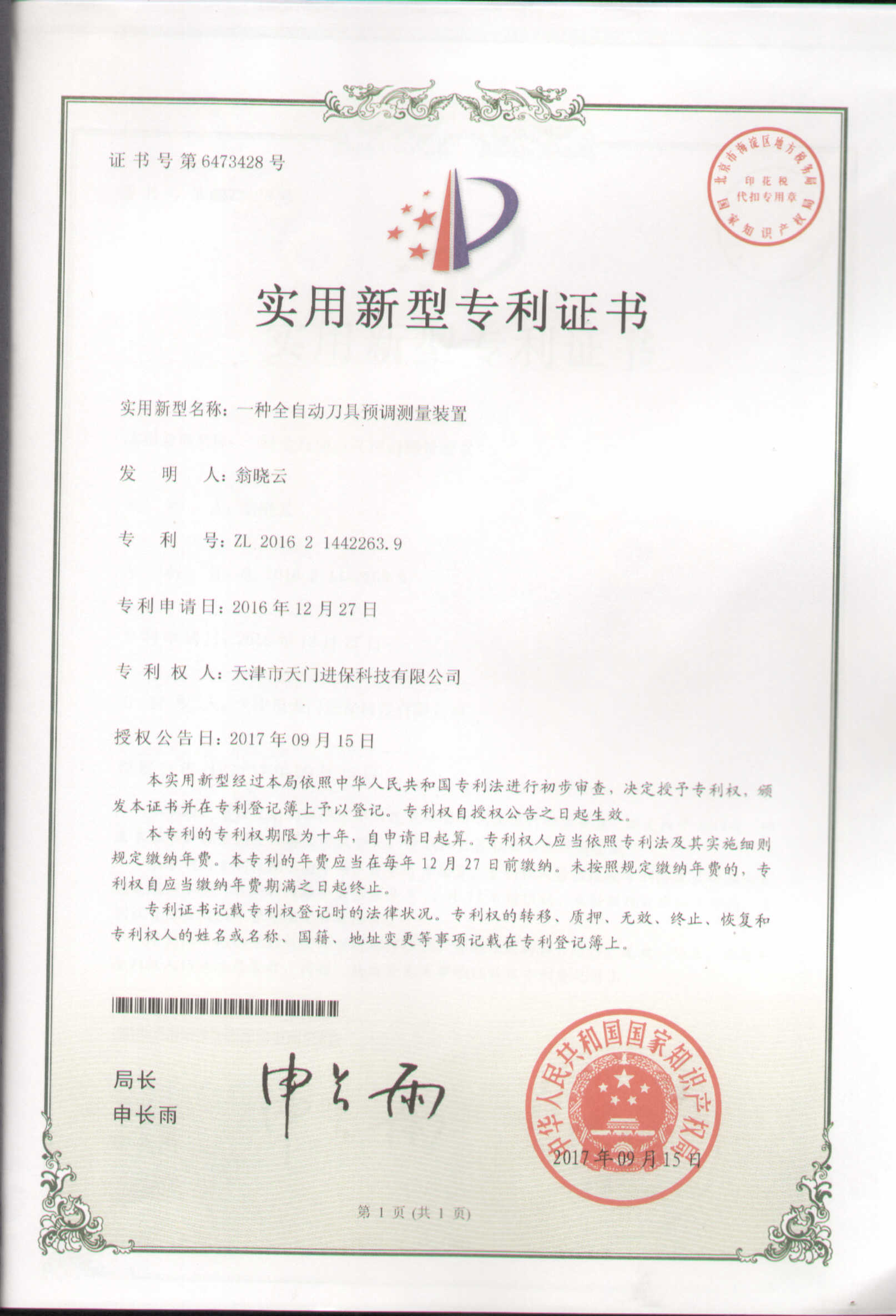 知識產(chǎn)權(quán)證書